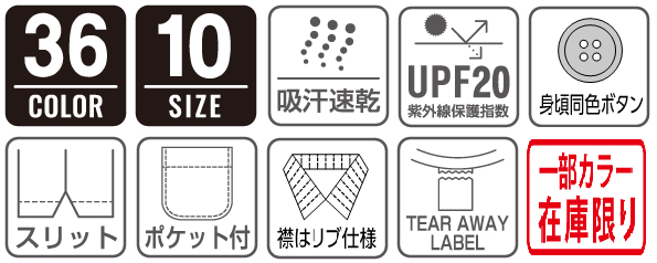 人気のポケット付きドライポロシャツ00330-AVP。吸汗速乾機能に優れていて、べたつく汗を即座に吸い取り衣服を素早く乾かす◎。運動後や洗濯後などに抜群の速乾性でさらに色落ちしにくく襟、身頃、袖口の型くずれがしにくいので、日常使いにも適したドライポロシャツ。UV機能も付いているので紫外線から肌を守ってくれます。使い勝手が良いので何枚あっても困らないドライポロシャツ00330-AVP。ボタンは身頃と同色。