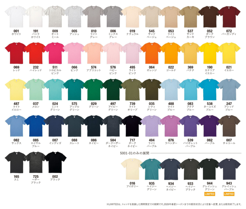 | 5001-01 S〜XL | ¥1,260(税込\1,386) → ¥630(税込\693) |